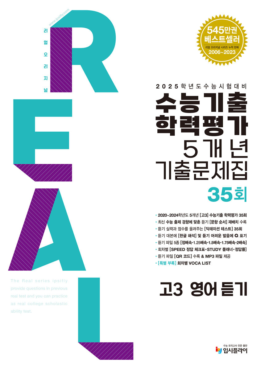 2025 수능대비 리얼 오리지널 수능기출 학력평가 5개년 기출문제집 35회 고3 영어 듣기 (2024년) 예스24 , 2025학년도 대학수학능력시험이 오는 11월 14일에 실시된다.